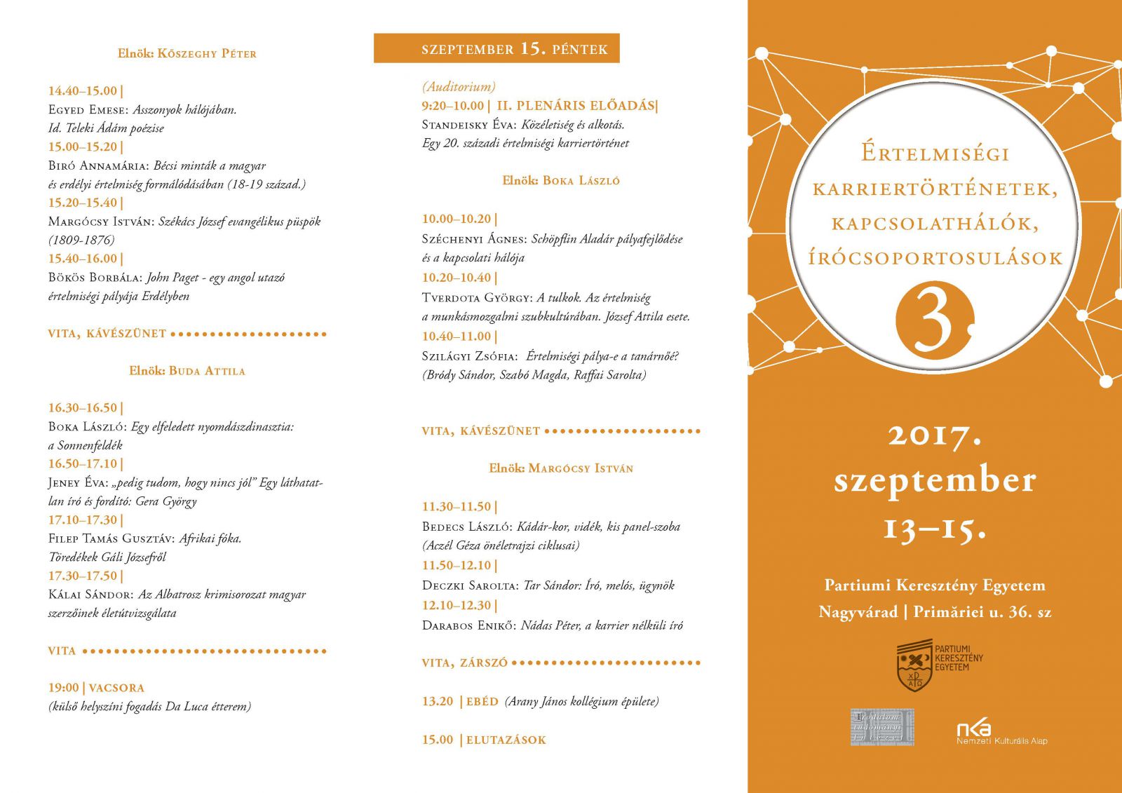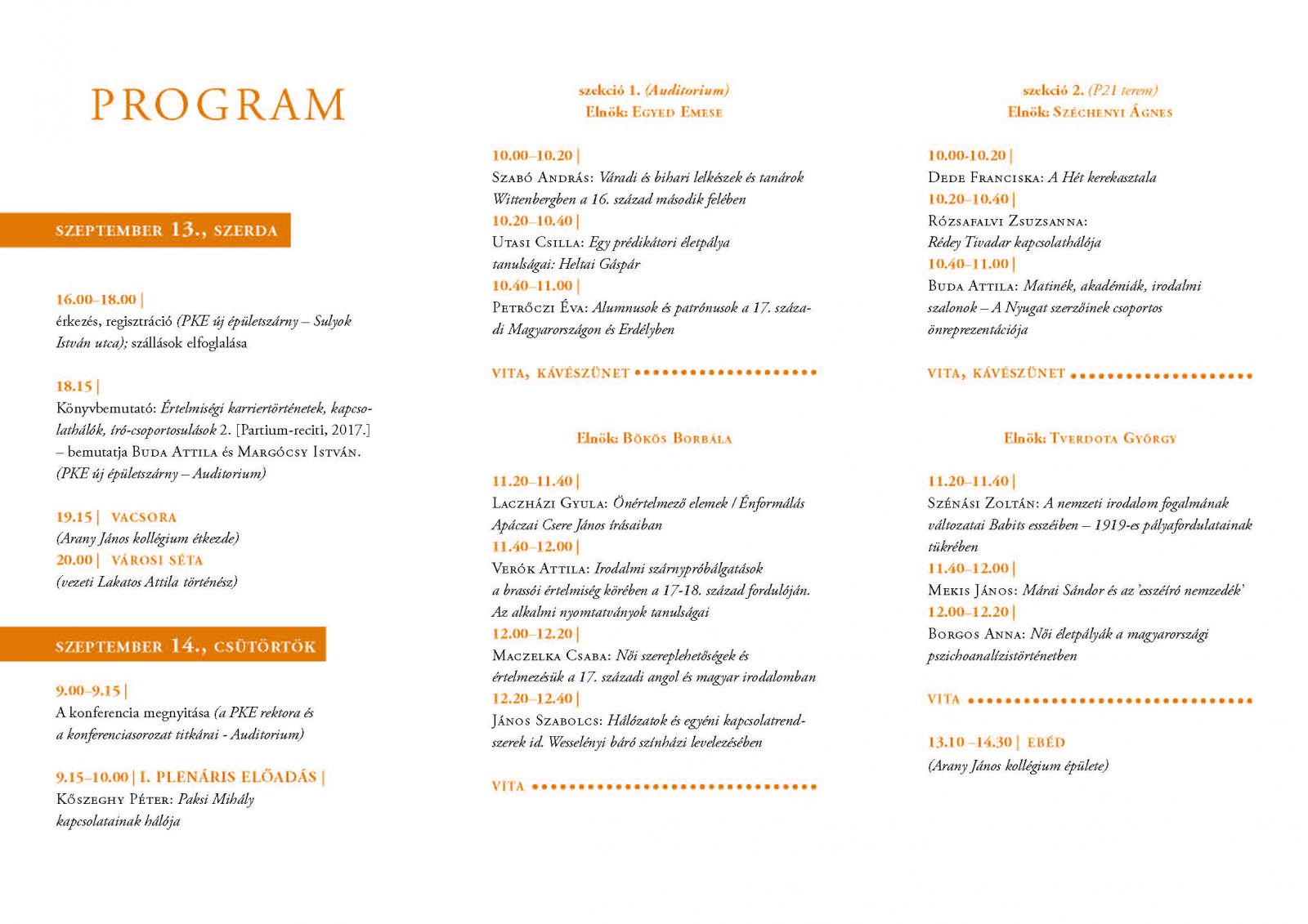 Értelmiségi karriertörténetek, kapcsolathálók, írócsoportosulások c. konferencia 2017. szeptember 13-15.